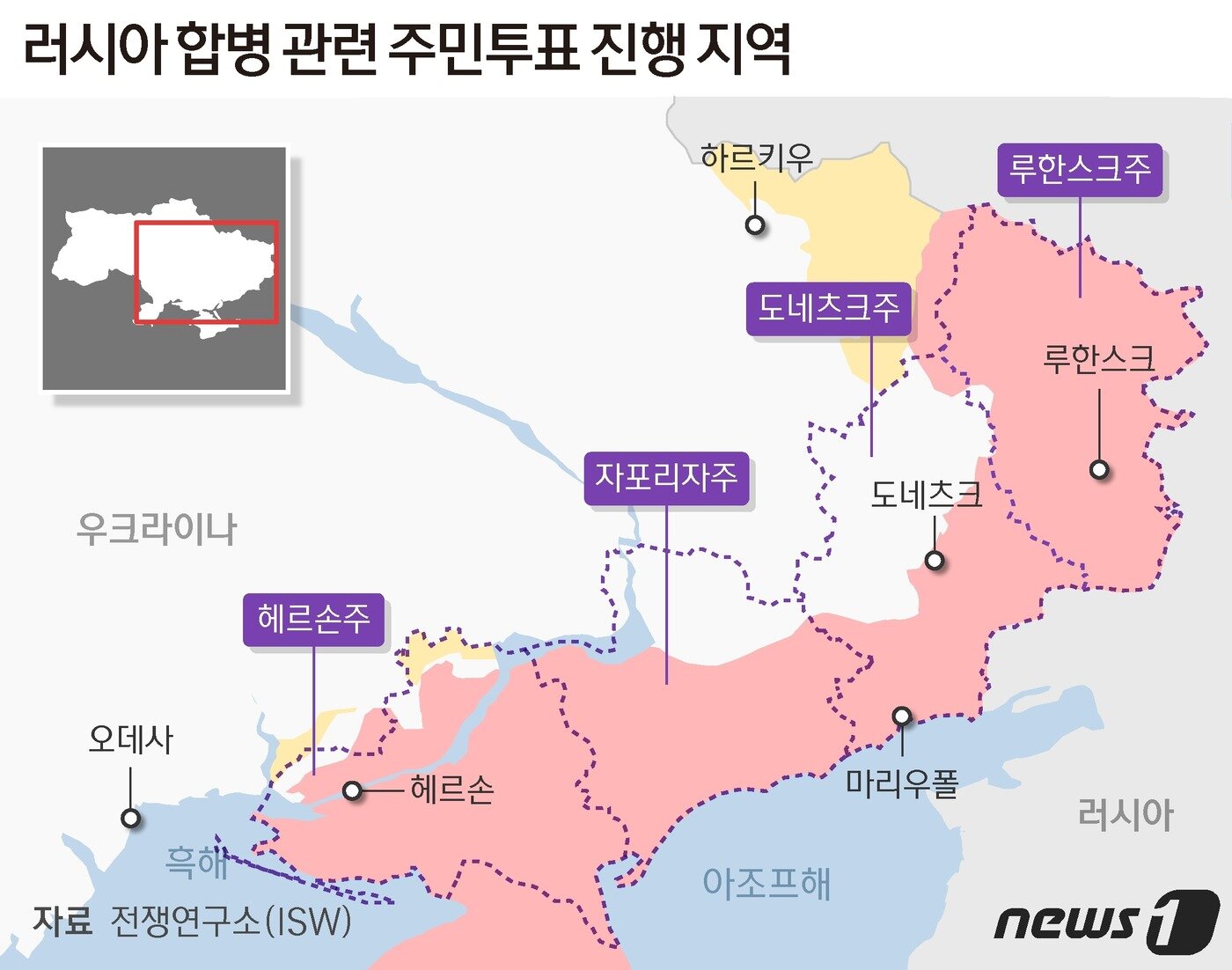 러시아는 우크라이나의 반격에 지난달 말 동부 요충지 리만을 빼앗긴 데 이어 남부. 우크라이나군의 영토 탈환 작전이. 헤르손 은 3월 2일 에 러시아군 에 완전히 함락된 직후 군정청이 설치돼서 3월 12일 에는 아예 인민공화국 창설을 논의했었다.